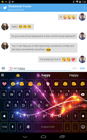 Emoji Keyboard -Cute,Emoticons es la app perfecta para aquellos que no están contentos con el aburrido teclado por defecto de los teéfonos y tablets con Android. Con esta app tendrás un teclado a todo color, con unos emojis más divertidos, dibujos prediseñados, gifs y mucho más.